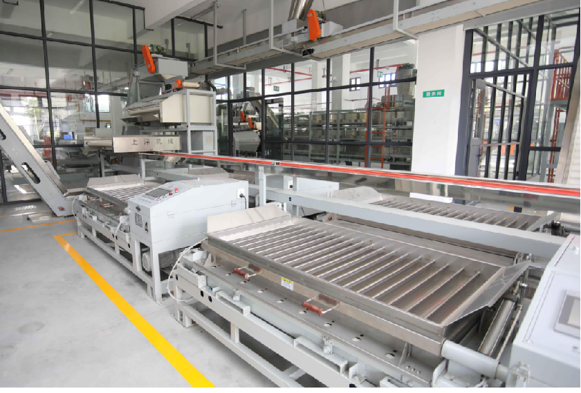 機組組成:本機組由送料提升機、往復(fù)移動布料系統(tǒng)、計量稱重系統(tǒng)、下料系統(tǒng)、理條機組、出料輸送機、機組集成控制系統(tǒng)組成。